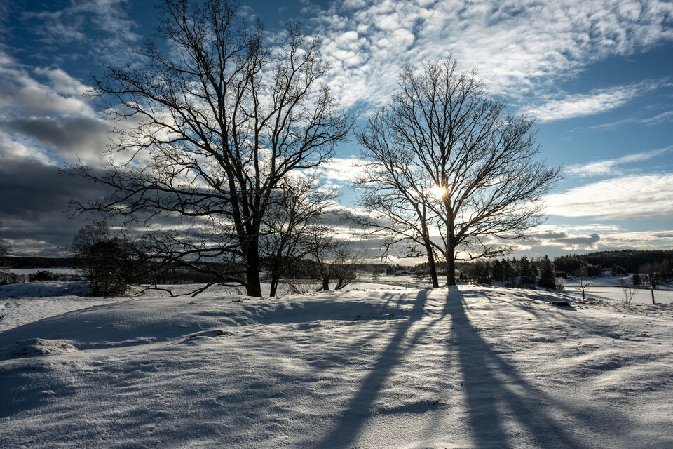 Fortfarande riktig vinter, härligt. Runt - 10 hela dagen. Korsheden och trakten runt gör sig i vinterdräkt.