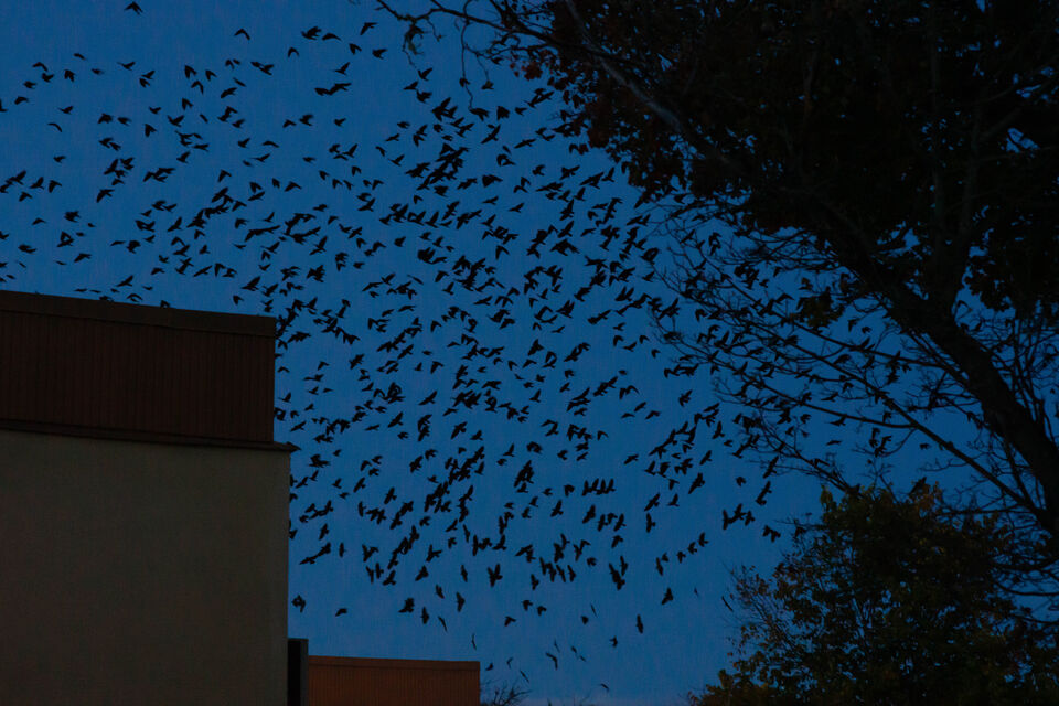 Straxt före 19 i kväll stannade jag till i centrum och hörde genast den stora flocken av kajor. Dom cirklade just runt och letade nattläger. Jag hade 99:an liggande i bilen med Minolta 85:an ... läs mer..