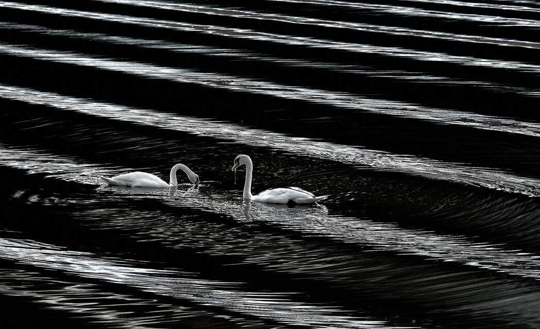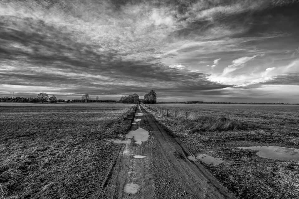 Blandade naturbilder - landskap, fåglar, detaljer - i svartvitt